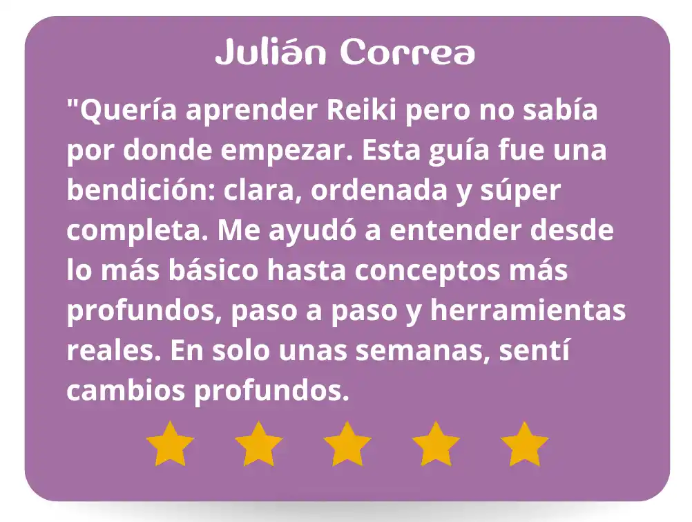 Esta guía te ofrece una introducción clara, práctica y espiritual al mundo del Reiki. Diseñada para amantes de lo holístico, espirituales y buscadores de propósito: esta guía te abre la puerta al mundo del Reiki con una base sólida y profesional.